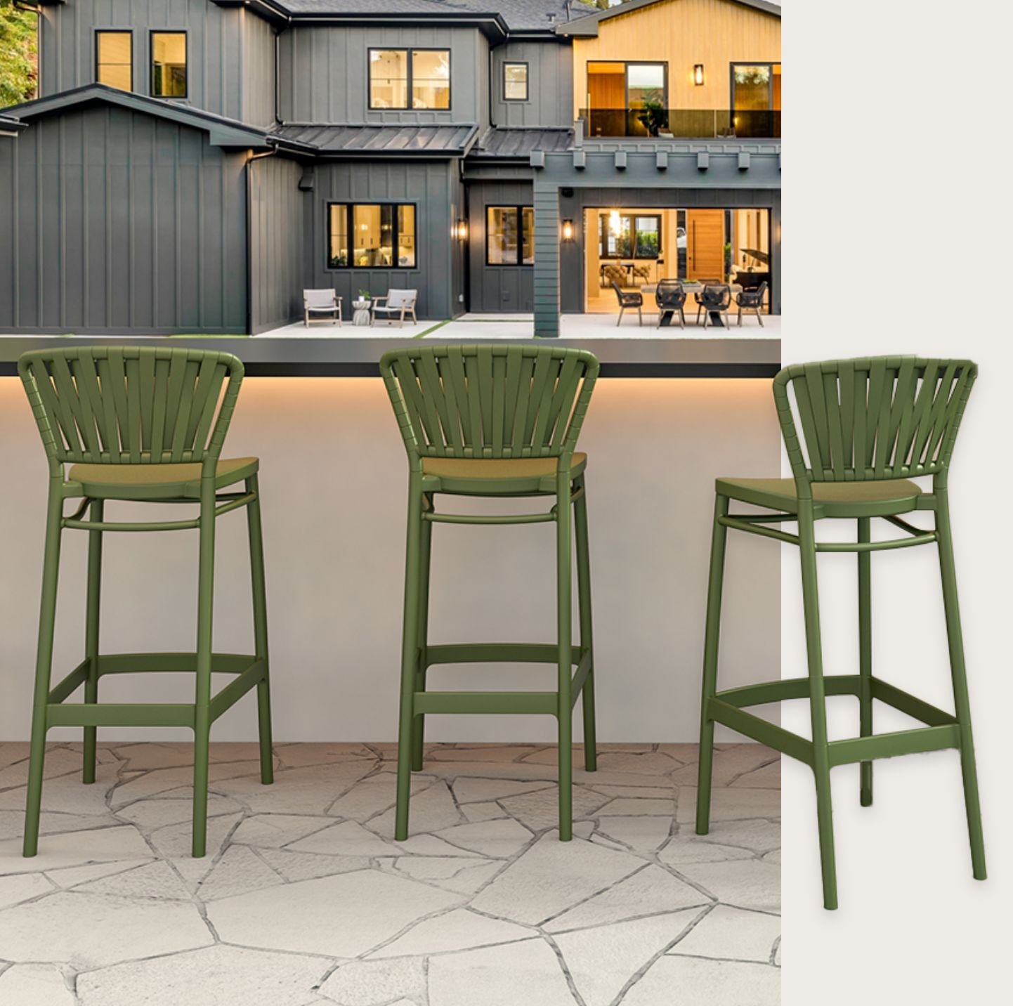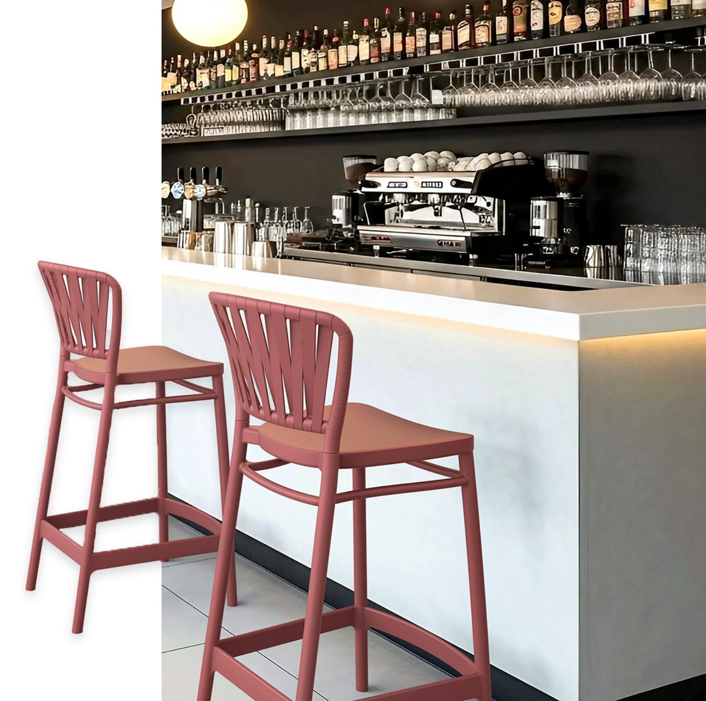 A sleek and elevated 75cm bar stool designed for modern spaces. Made from single-injection polypropylene reinforced with glass fiber, it combines lightweight comfort with reliable strength. Easy to maintain and built to last, it is suitable for both indoor and outdoor use.