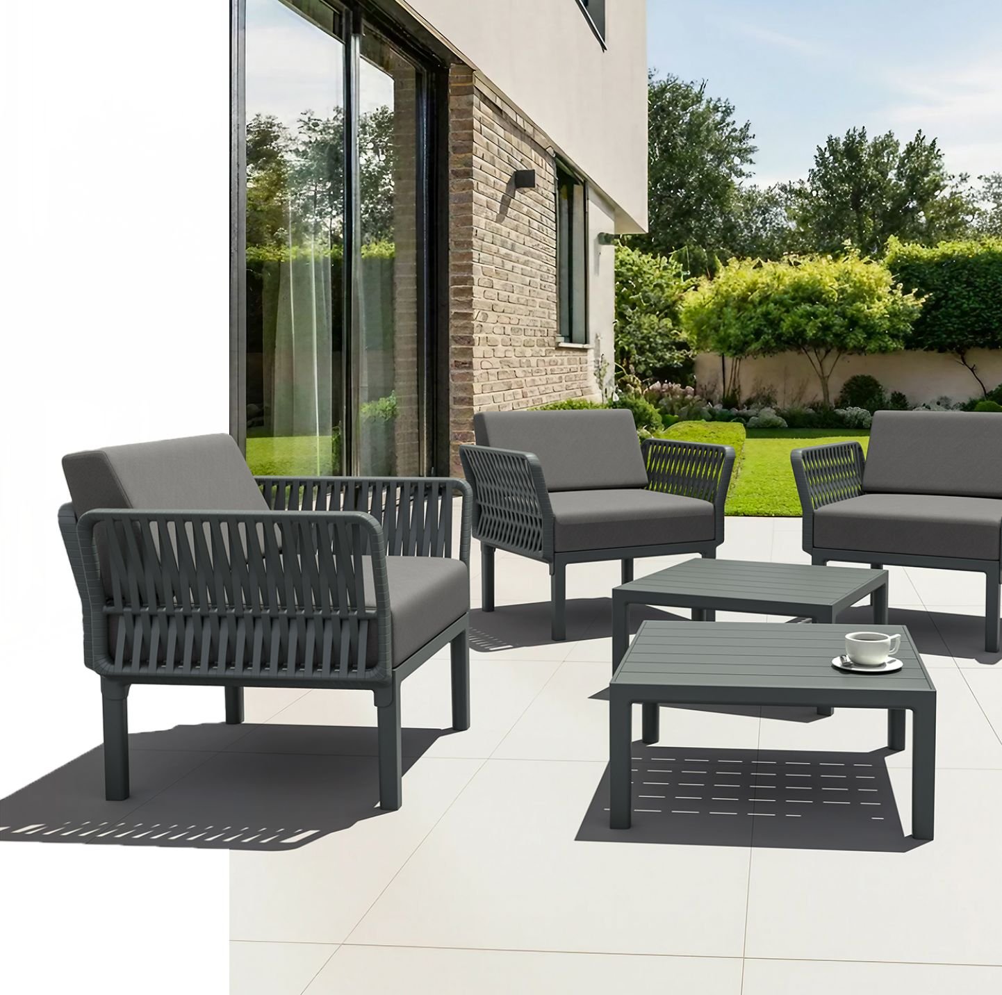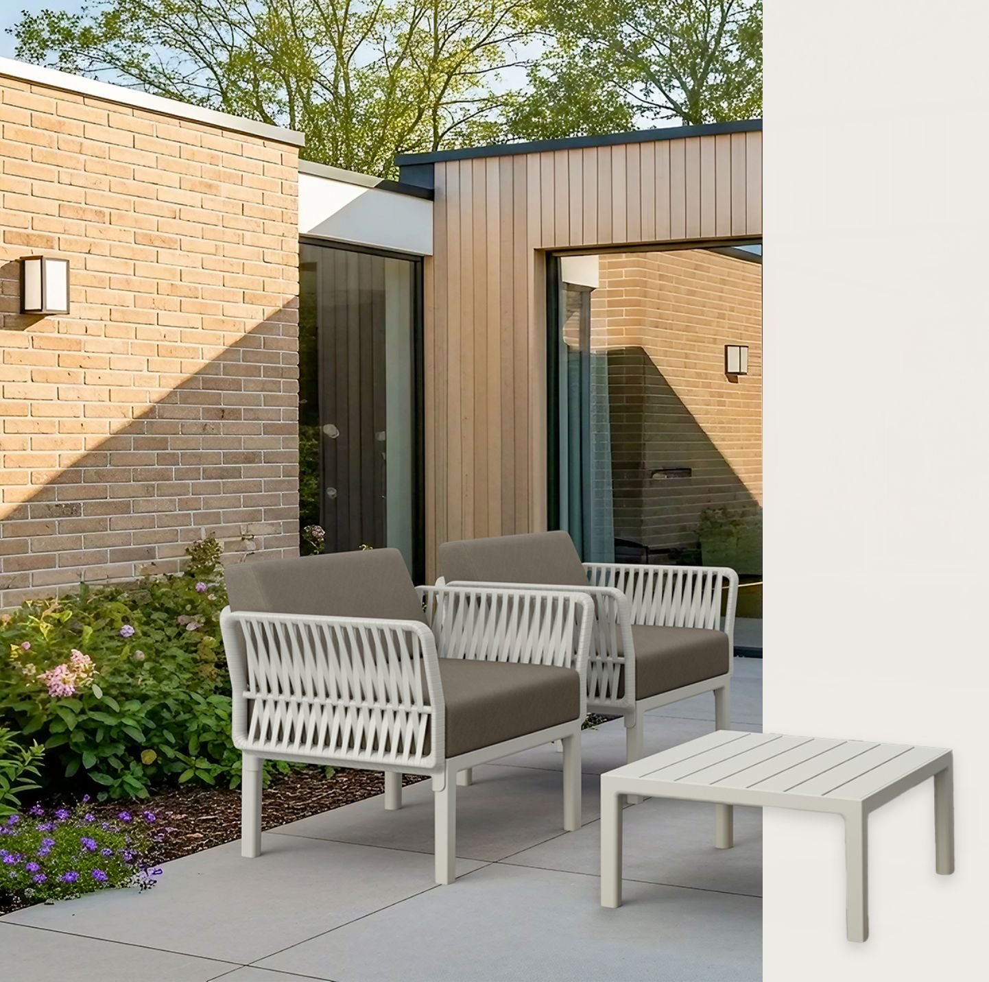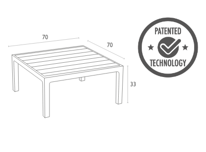 Sleek and practical lounge table designed for both indoor and outdoor spaces. Made from durable, weather-resistant resin. Its non-metallic frame will not rust, unravel, or decay. UV protection keeps the colors vibrant over time, making it a reliable choice for homes, terraces, and hospitality venues.