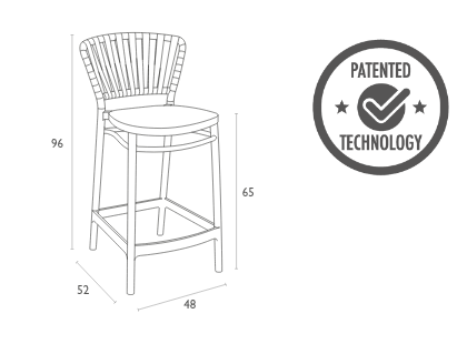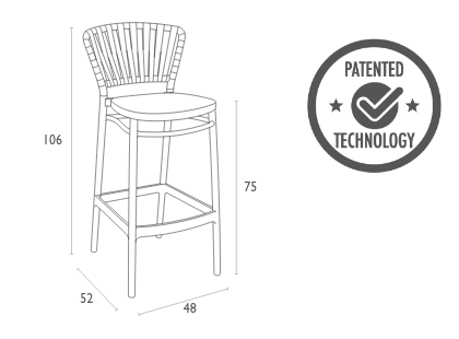 A modern 65cm bar stool crafted from single-injection polypropylene reinforced with glass fiber for strength and durability. Inspired by the classic braided-rope look and produced with advanced 3D injection moulding technology, it offers refined style without fraying or sagging.