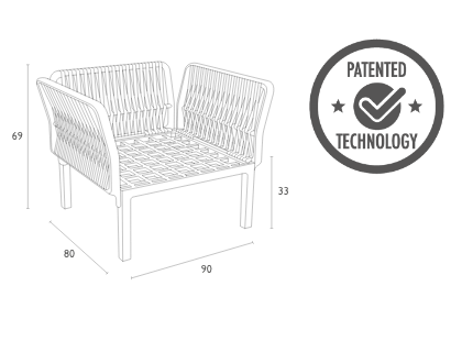 A stylish and comfortable lounge armchair made from durable, weather-resistant resin reinforced with glass fiber. It offers long-lasting performance with minimal maintenance. Inspired by the braided-rope look and enhanced with UV protection, it keeps its elegance without fraying or fading. The screwless system allows easy assembly, making it ideal for homes, hospitality venues, and commercial use.