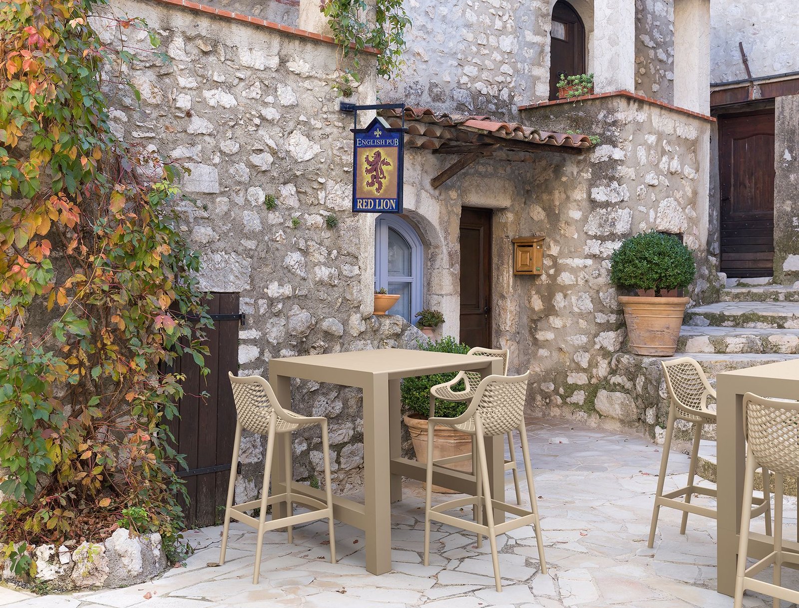 Air Bar Stool h.75 cm is produced with a single injection of polypropylene reinforced with glass fiber obtained by means of the latest generation of air moulding technology with neutral tones. For indoor and outdoor use.