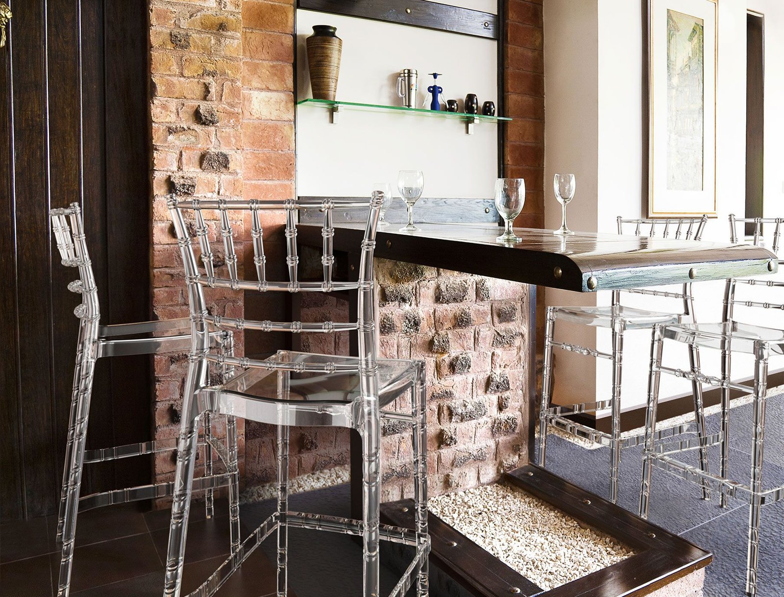Stacking wedding bar stool h.75 cm for indoor and outdoor use in clear or shiny polycarbonate. Scratch resistant, UV – resistant.
