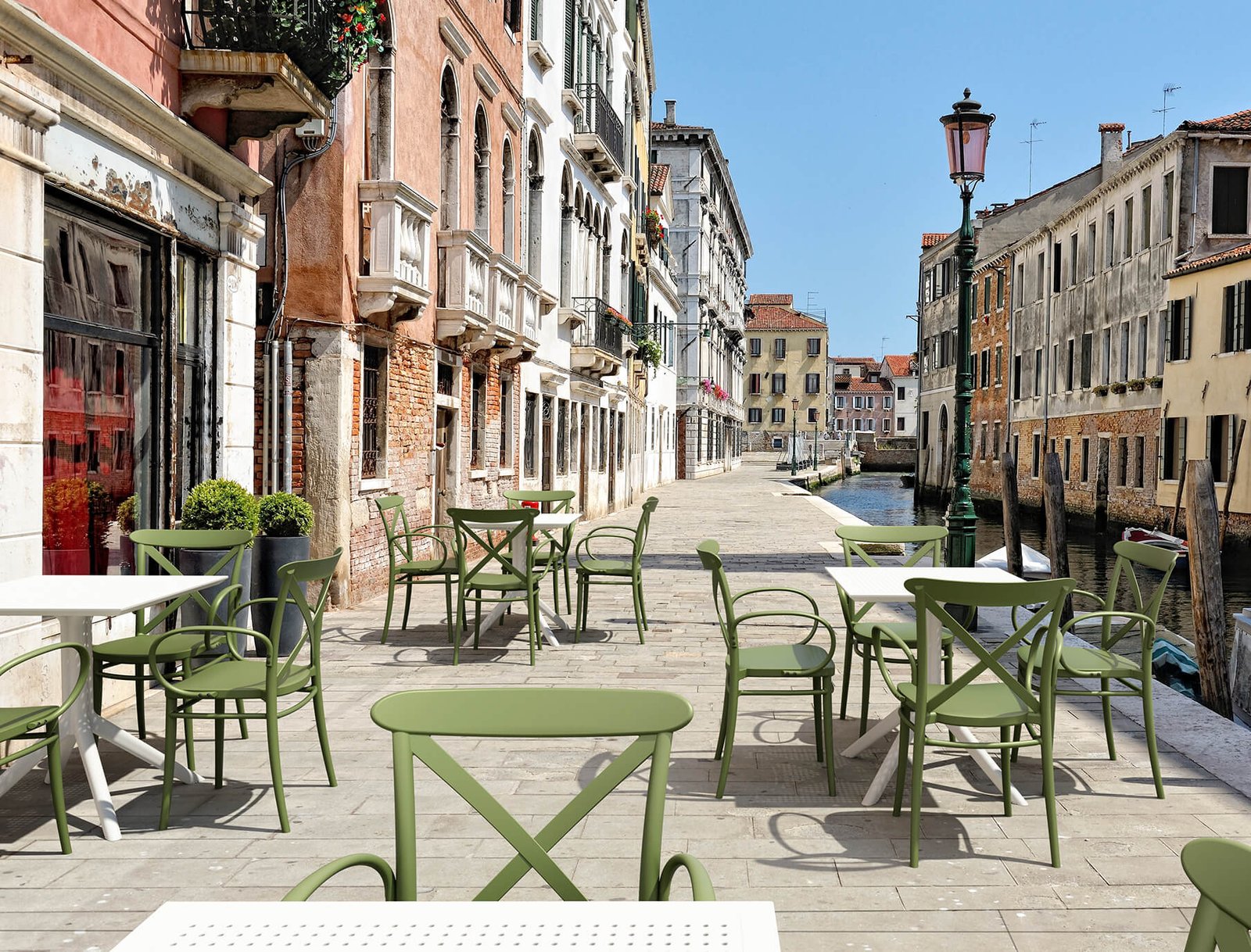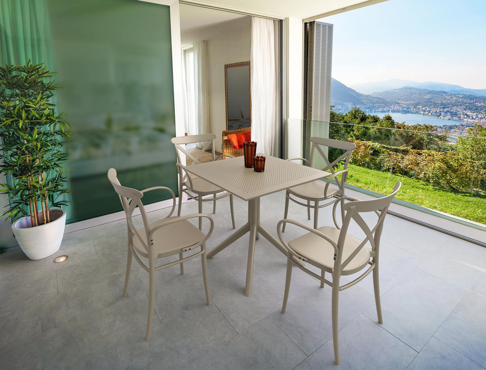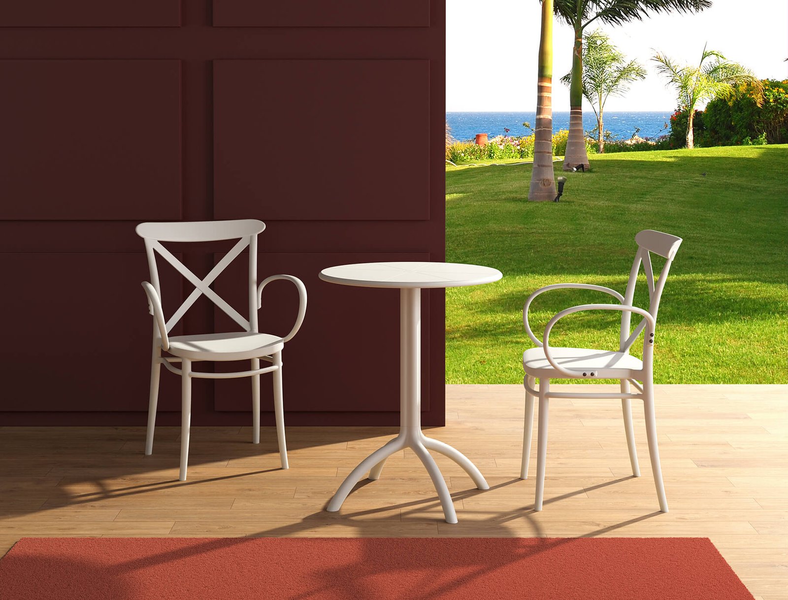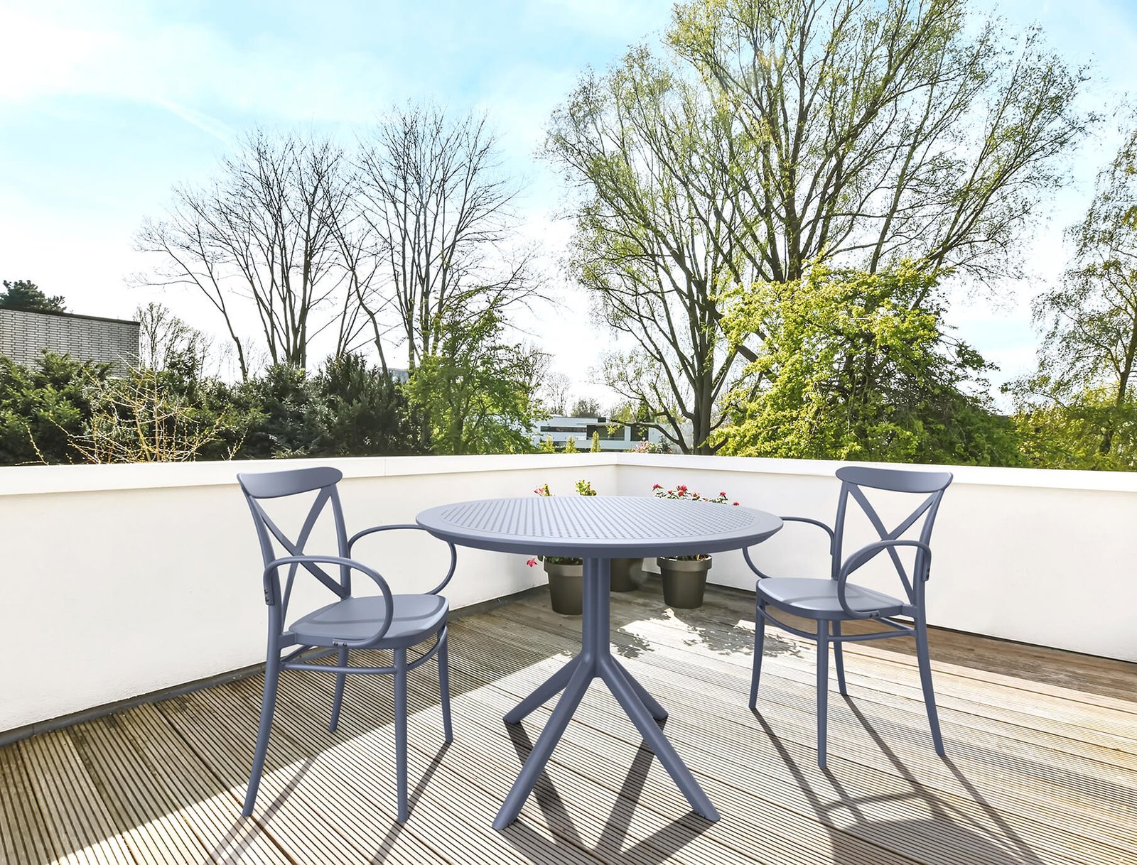 Cross XL stacking armchair is produced with a single injection of polypropylene reinforced with glass fiber obtained by means of the latest generation of air molding technology with neutral tones. For indoor and outdoor use.