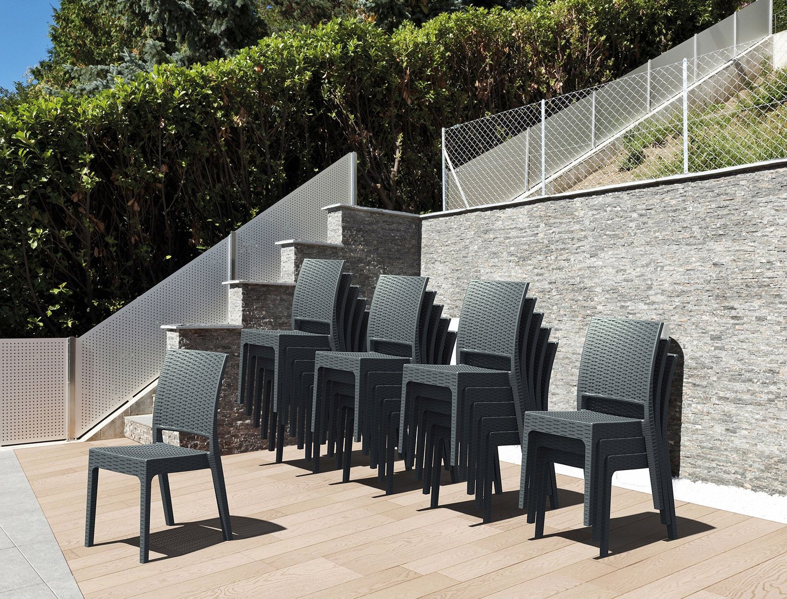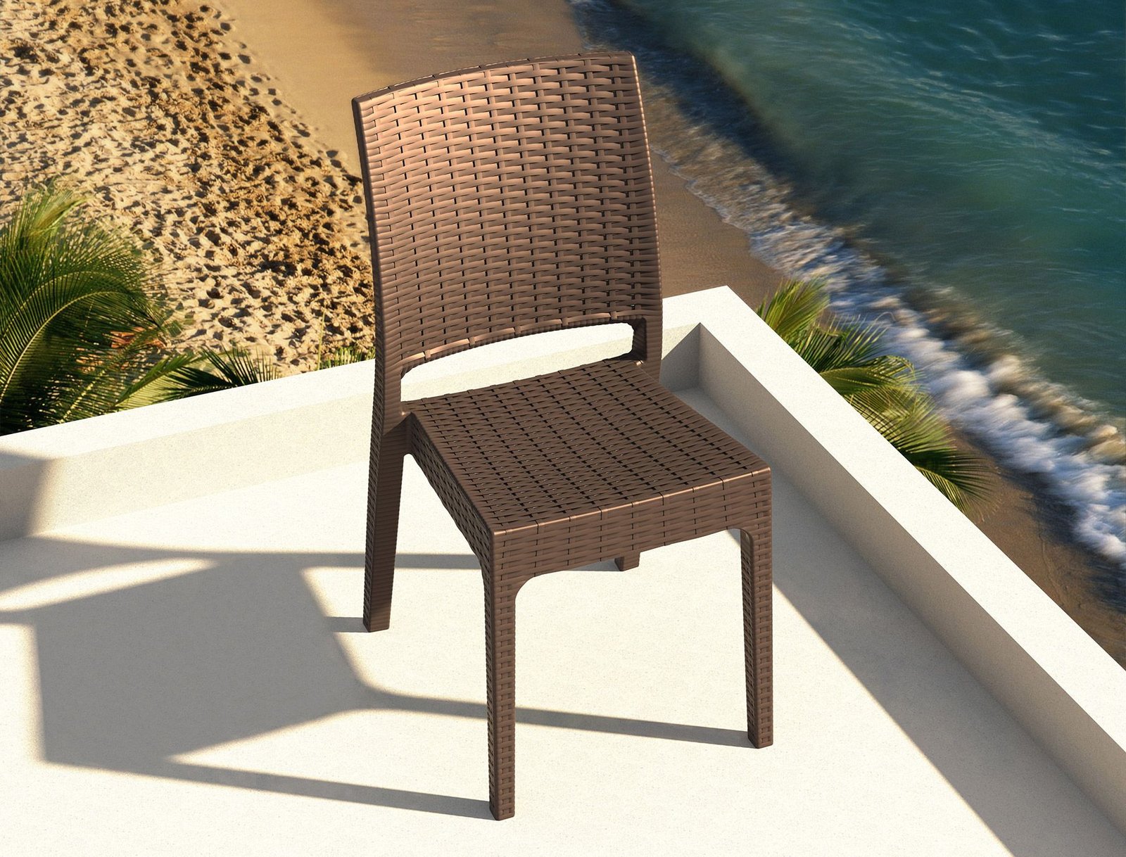 Florida chair is stackable and made of durable weather-resistant resin reinforced with glass fiber. Non-metallic frame will never unravel, rust or decay. It is UV protected which insures the colors will not fade. For indoor and outdoor use.