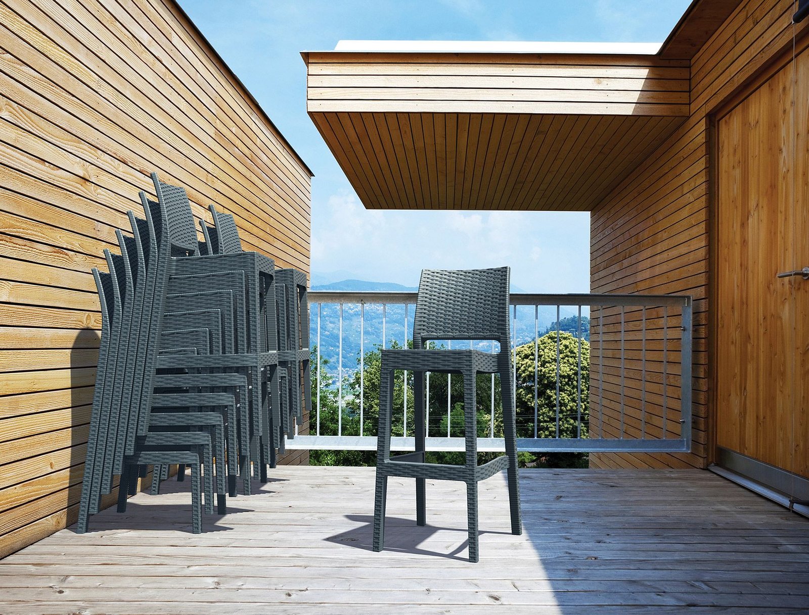 Jamaica bar stool is stackable and made of durable weather-resistant resin reinforced with glass fiber. Non-metallic frame will never unravel, rust or decay. It is UV protected which insures the colors will not fade. For indoor and outdoor use.