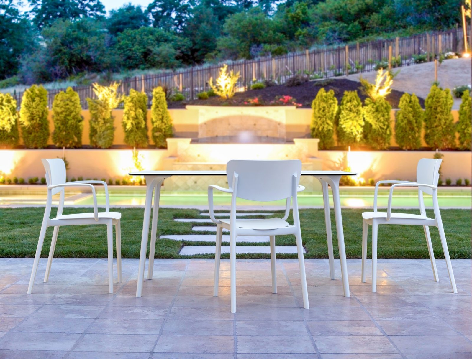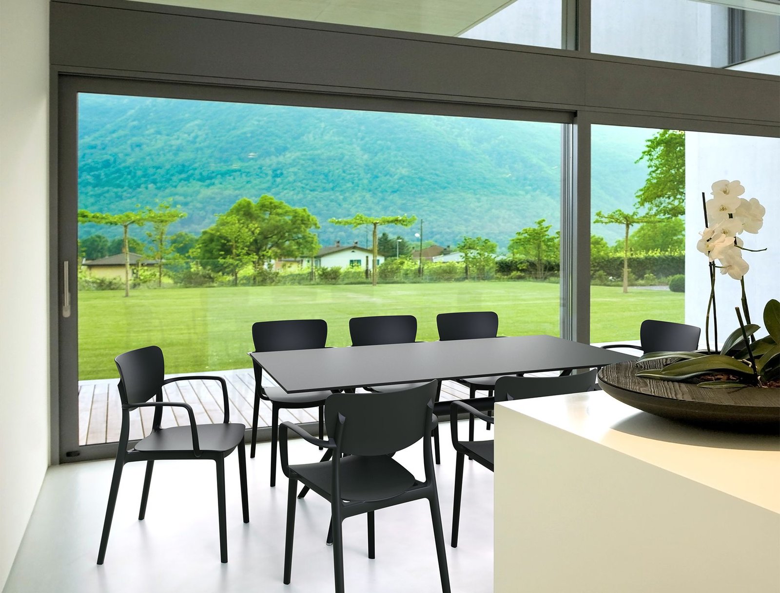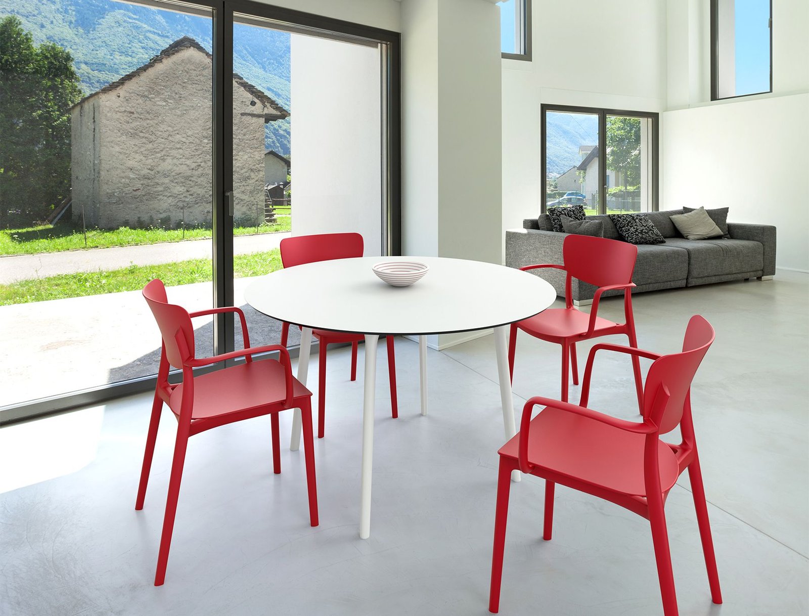 Lisa armchair is produced with a single injection of polypropylene reinforced with glass fiber obtained by means of the latest generation of air moulding technology with neutral tones. For indoor and outdoor use.