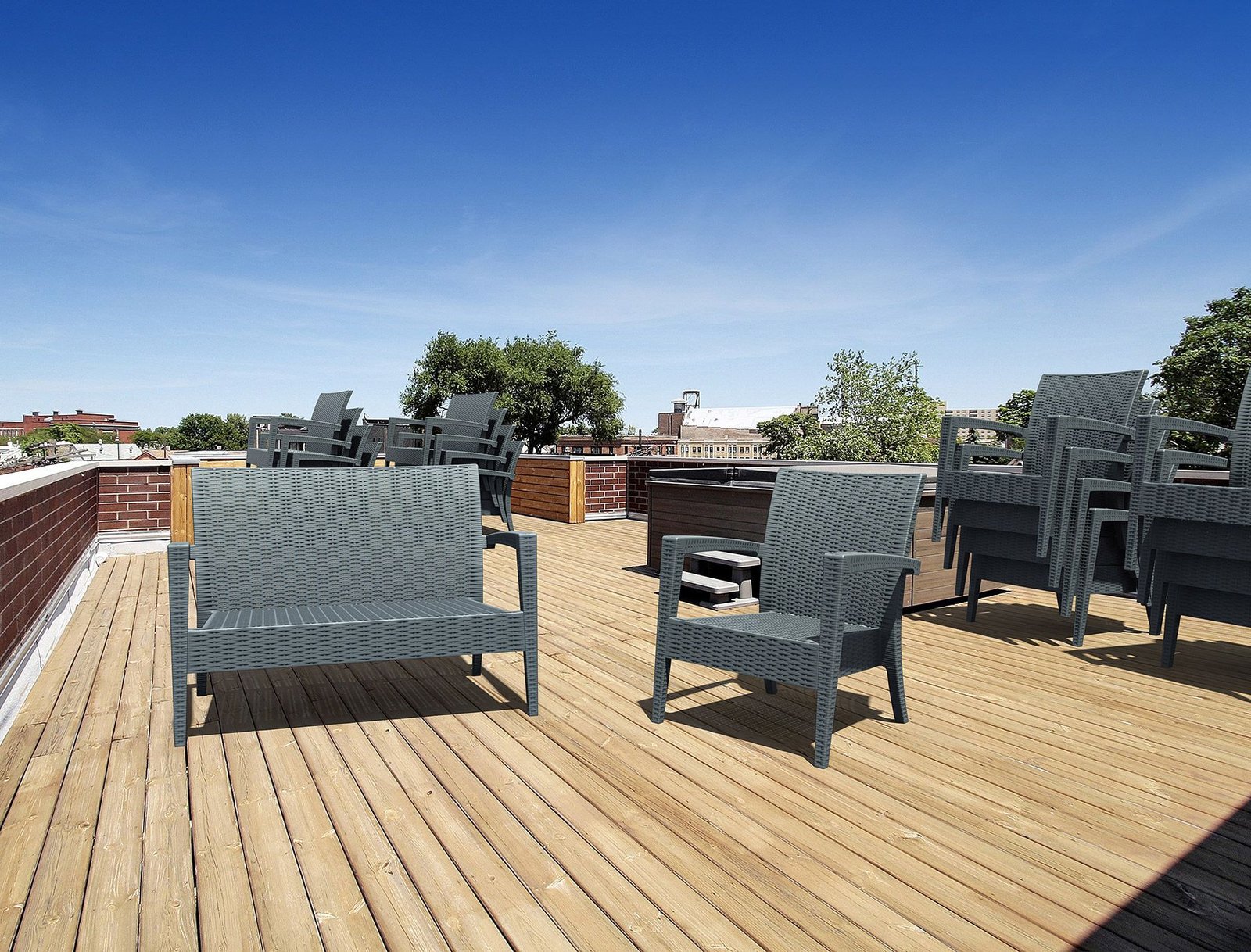 Miami Lounge Armchair is stackable and made of durable weather-resistant resin reinforced with glass fiber. Non-metallic frame will never unravel, rust or decay. It is UV protected which insures the colors will not fade. For indoor and outdoor use.