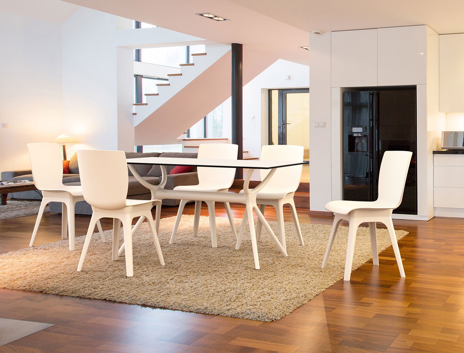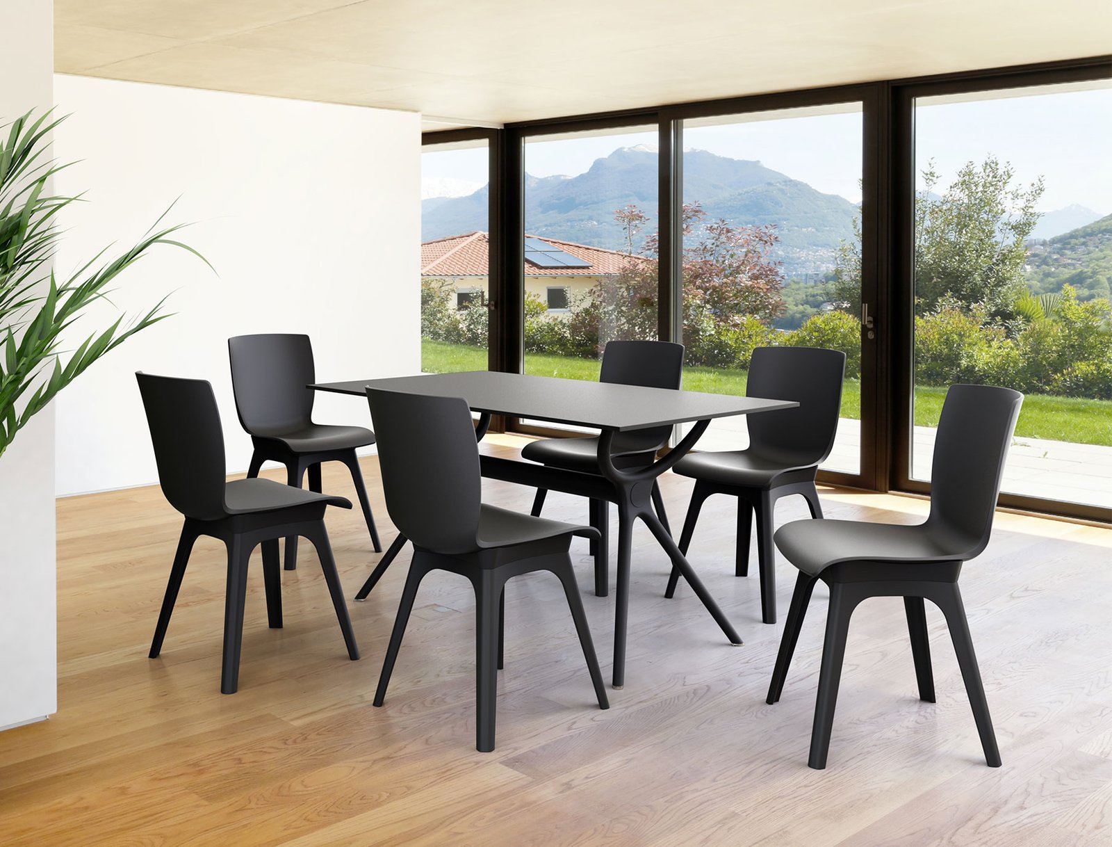 Mio-PP chair is produced with recyclable polypropylene seat and legs reinforced with glass fiber. For indoor and outdoor use. Can be disassembled.