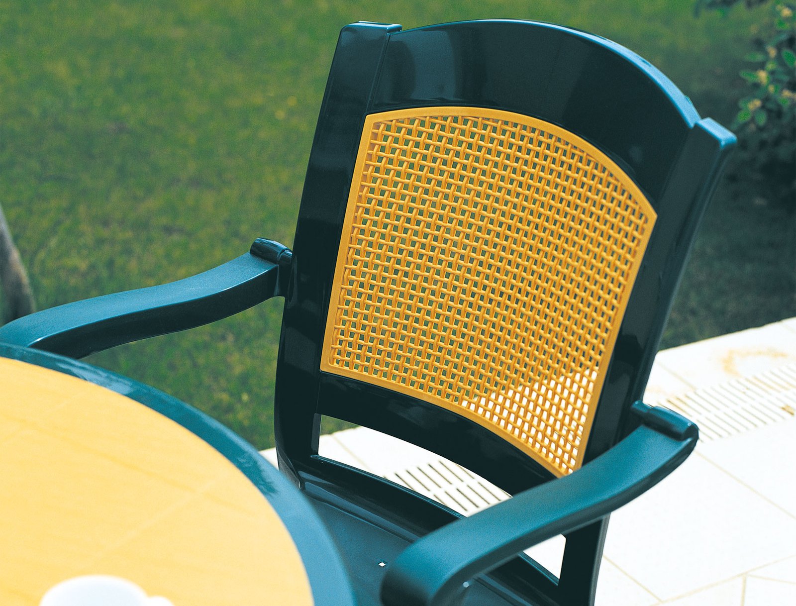 Modern armchair features refinement and a design carefully prepared down to the smallest detail. The braid backrest and enhanges this splendid armchair. The quality of the materials used and the satin finish of the some parts, make it durable and weatherproof and also stackable.