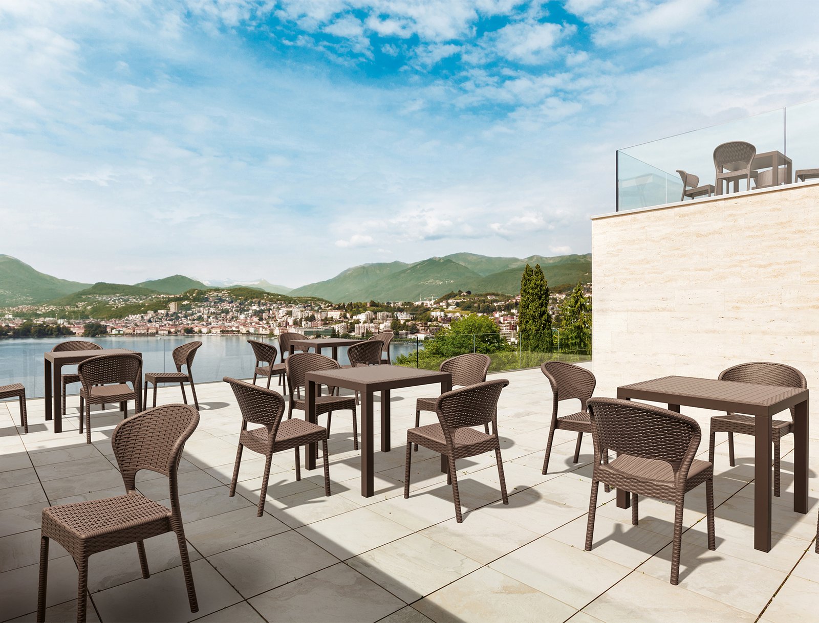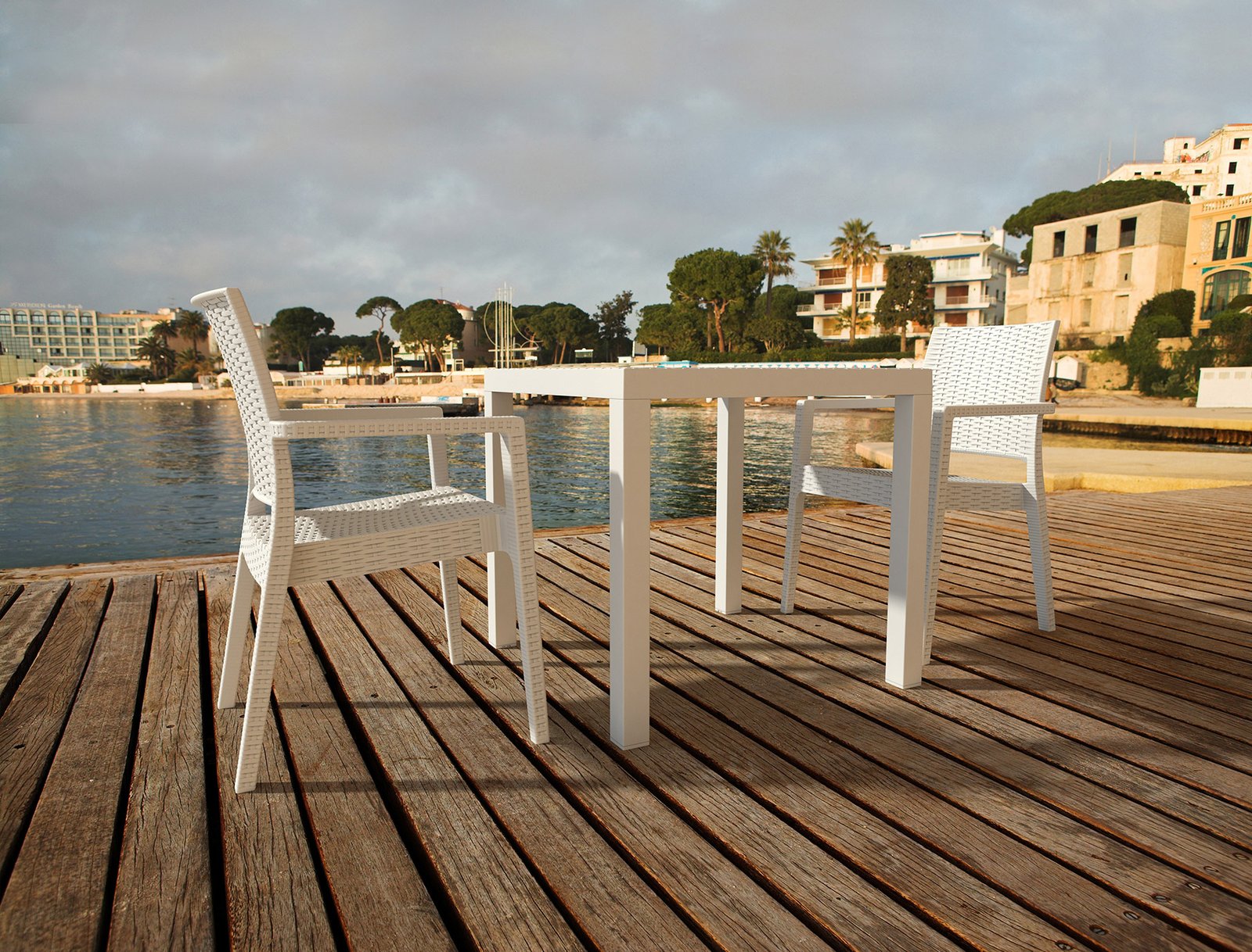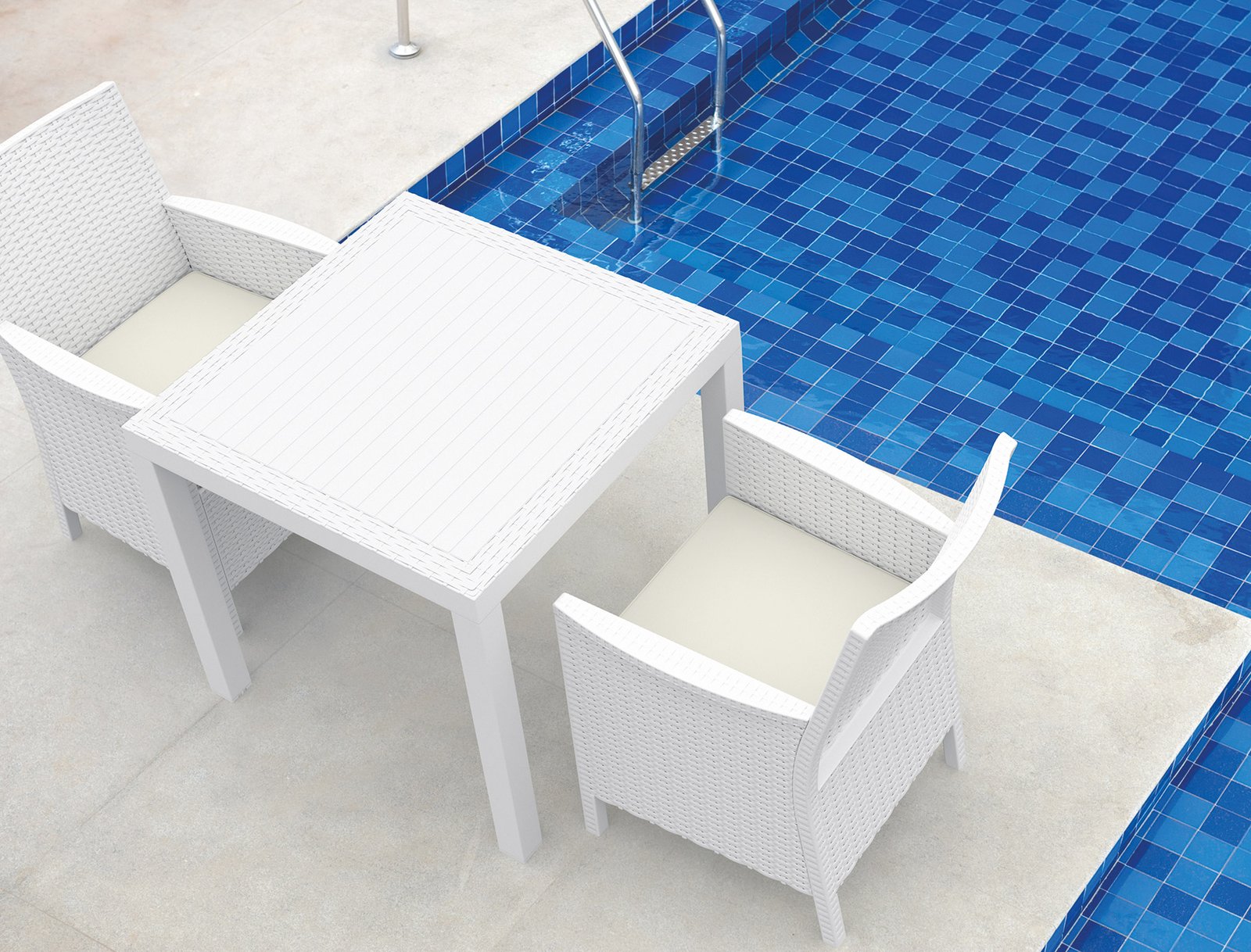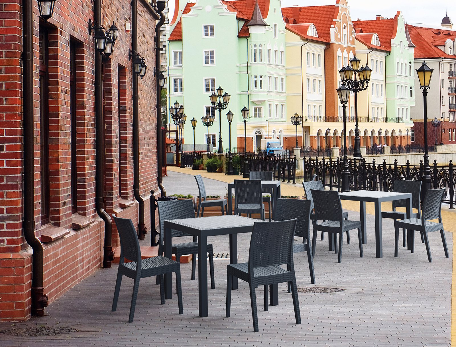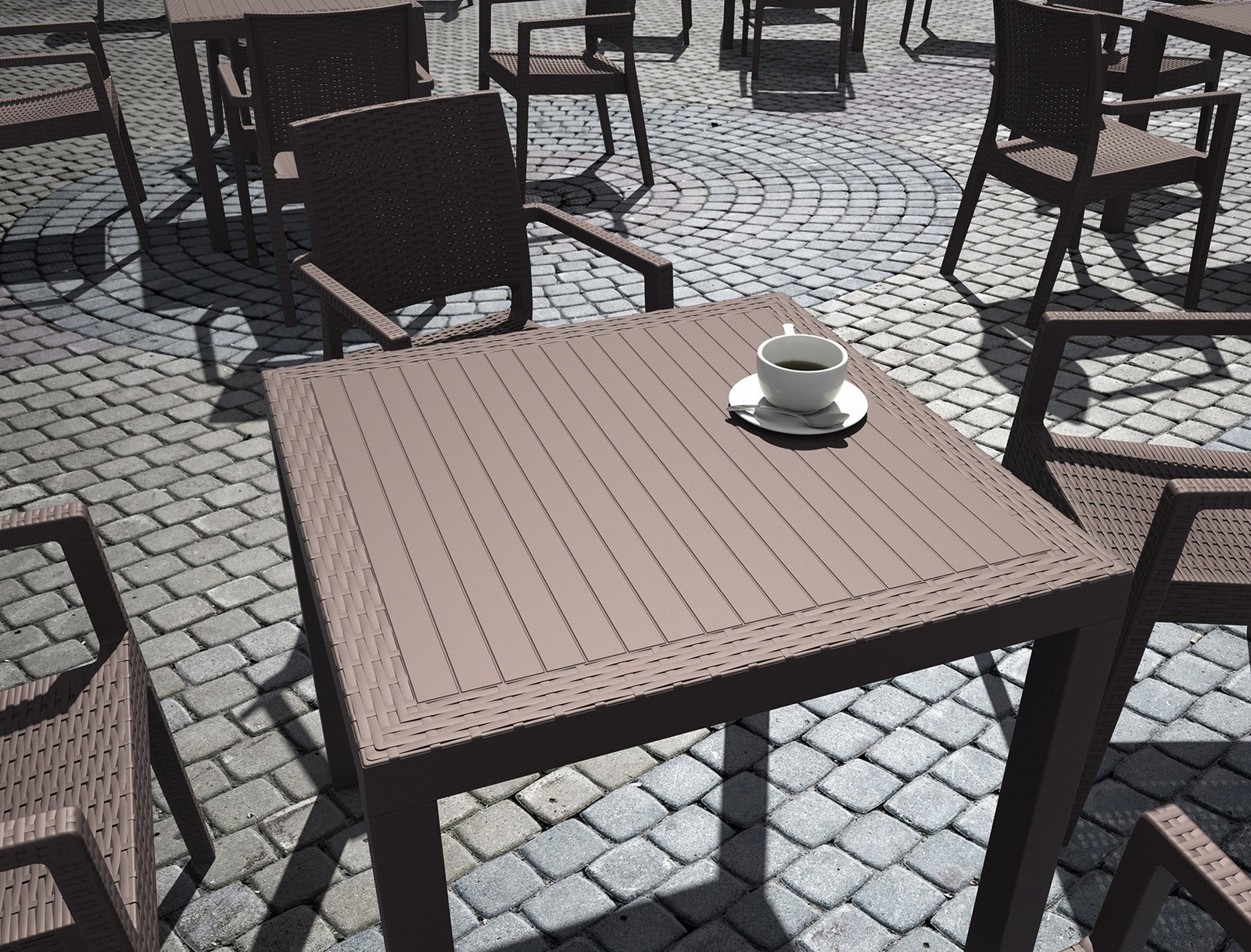 Orlando 80 table is made of durable weather-resistant resin. Non-metallic frame will never unravel, rust or decay. It is UV protected which insures the colors will not fade. Can be disassembled. For indoor and outdoor use.