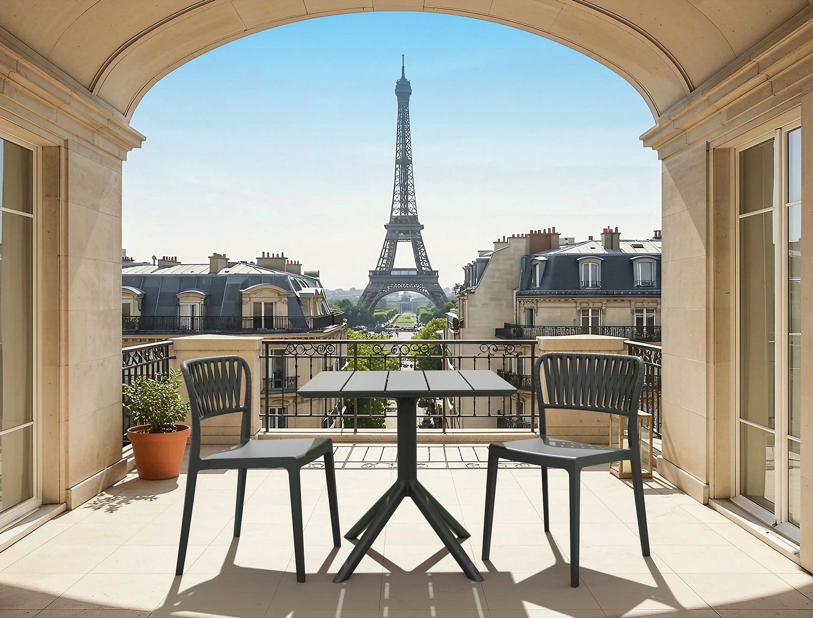 Portofino chair is stackable and produced with a single injection of polypropylene reinforced with glass fiber, for indoor and outdoor use and with non-slip feet. This chair reimagines the classic braided-rope aesthetic with cutting-edge polypropylene construction, made possible by the latest 3D injection moulding technology. It delivers the elegance of rope without the maintenance, no fraying, no sagging, and no hassle.