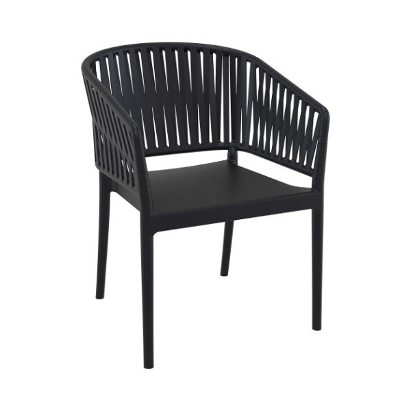 Portofino Armchair is stackable and produced with a single injection of polypropylene reinforced with glass fiber, for indoor and outdoor use and with non-slip feet. This armchair reimagines the classic braided-rope aesthetic with cutting-edge polypropylene construction, made possible by the latest 3D injection molding technology. It delivers the elegance of rope without the maintenance, no fraying, no sagging, and no hassle.