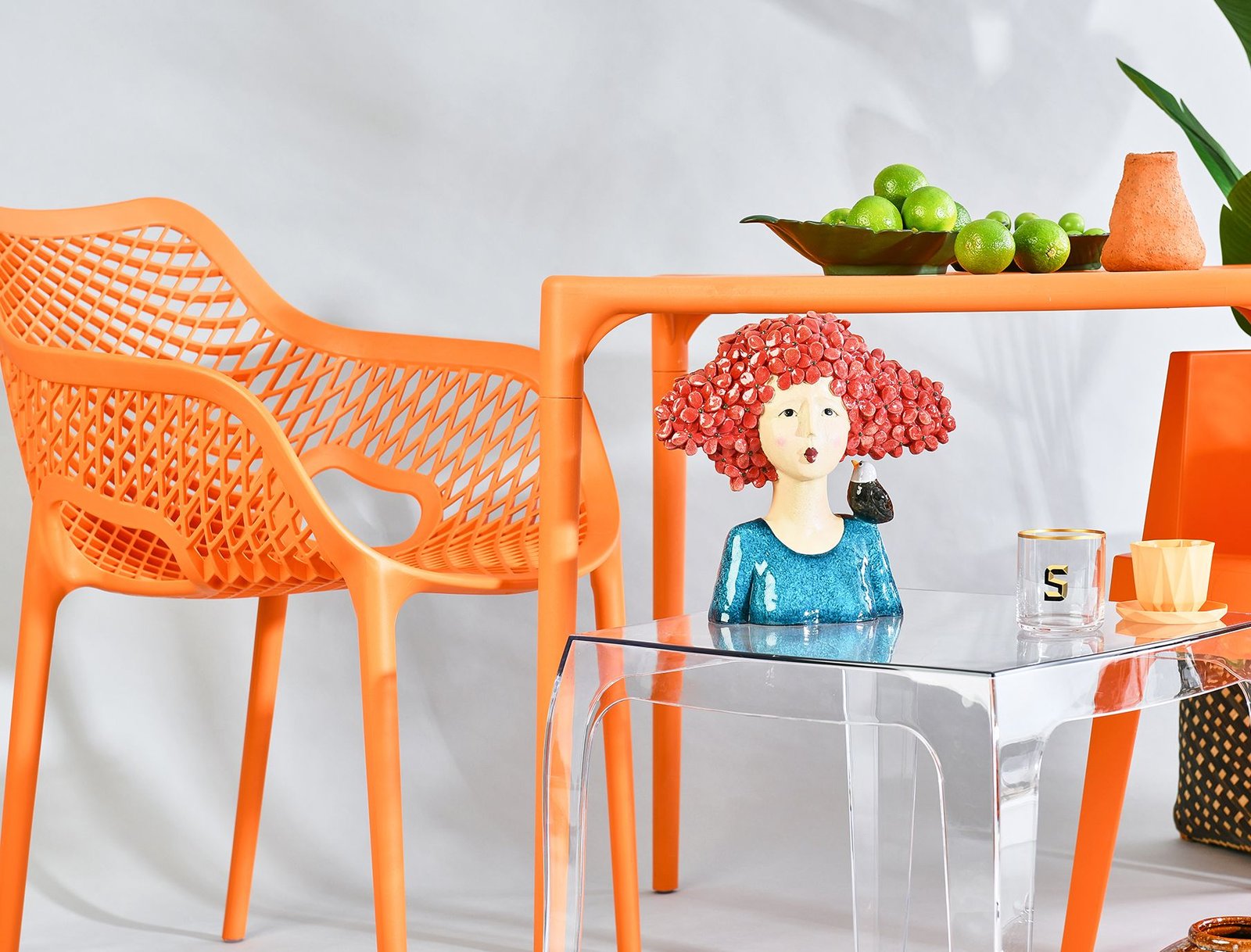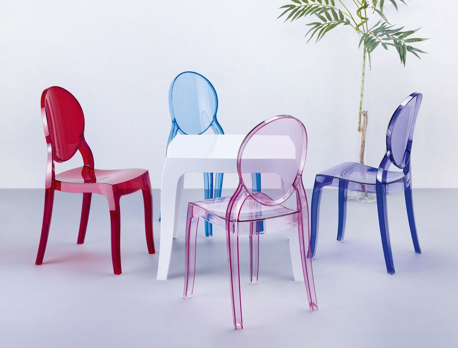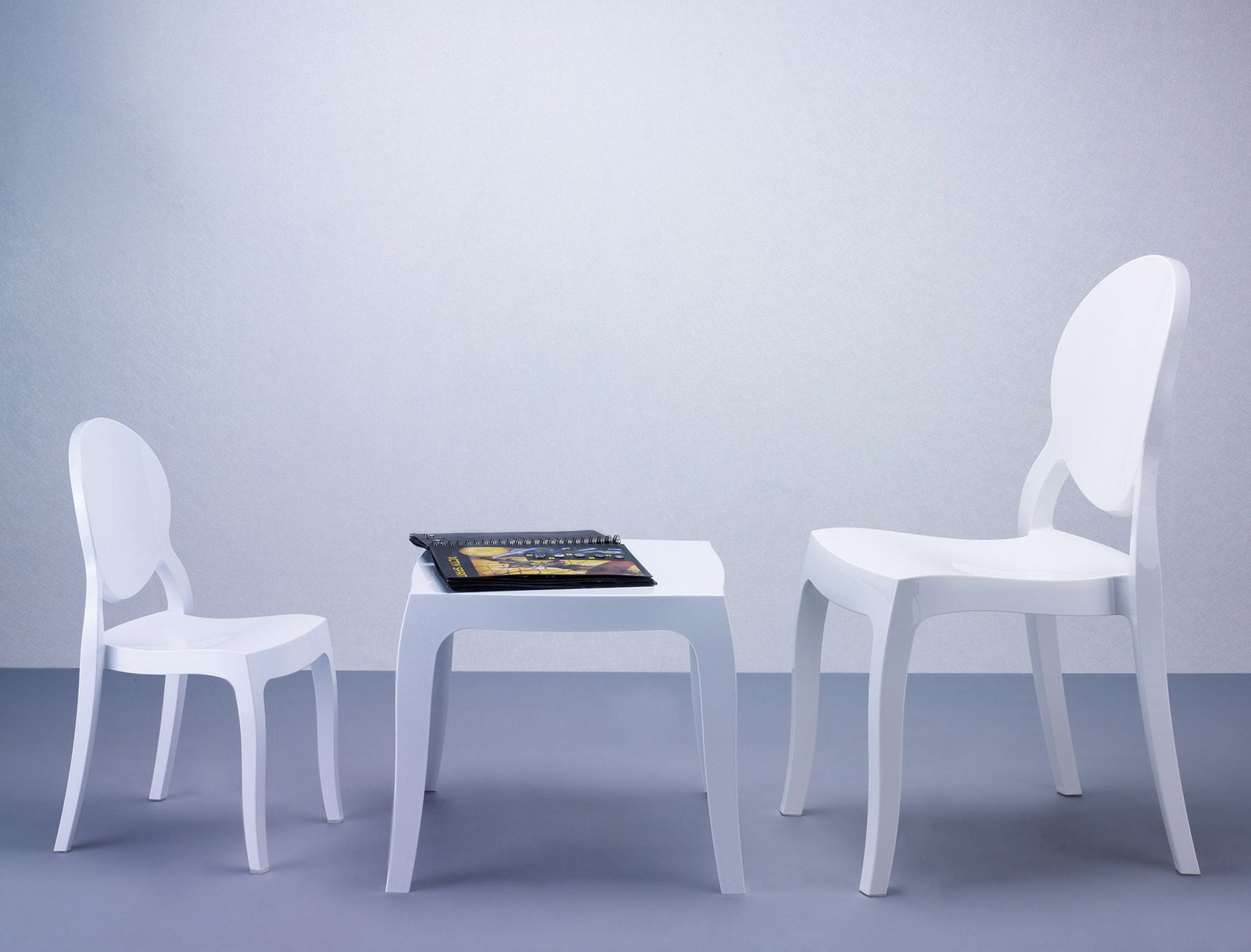 Stacking side table for indoor and outdoor use in clear polycarbonate. UV – resistant.