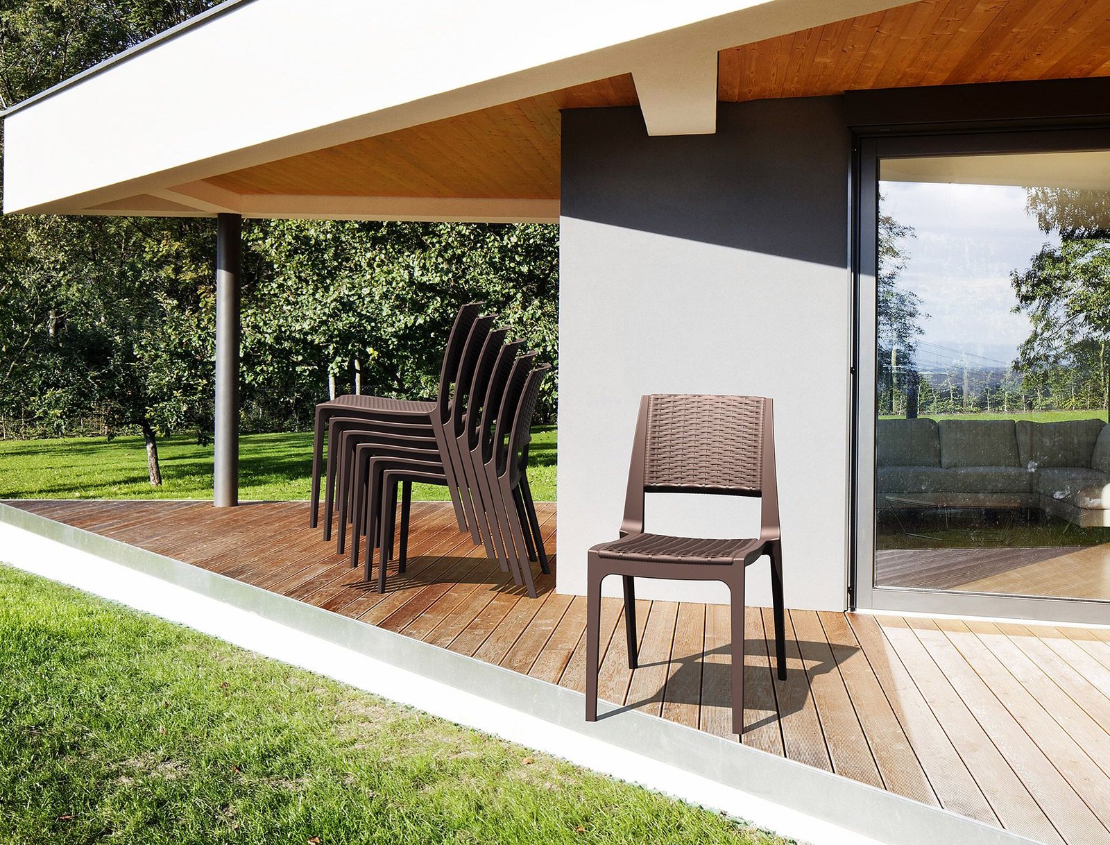 Verona chair is stackable and made of durable weather-resistant resin reinforced with glass fiber. Non-metallic frame will never unravel, rust or decay. It is UV protected which insures the colors will not fade. For indoor and outdoor use.